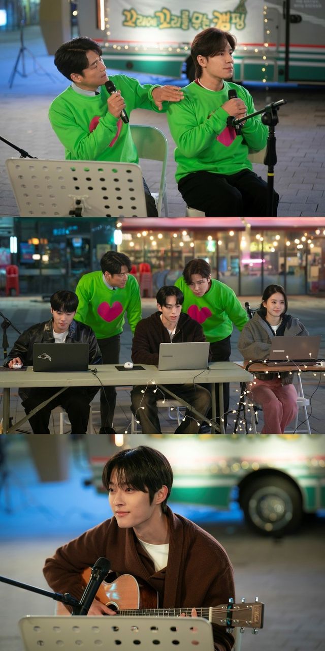 이에 지진희와 조영식, 킥킥킥킥 컴퍼니 식구들은 사람들이 많이 모이는 광장으로 나가는 승부수를 띄운다. 공개된 사진 속 이민재(이민재 분), 강태호(김은호 분), 가주하(전소영 분)는 성공적인 게릴라 라이브를 위해 만반의 준비를 하고 있는가 하면, 이마크(백선호 분)가 기타를 잡은 채 마이크 앞에 앉아 있어 싱어송라이터로서의 활약을 기대케 만들었다.