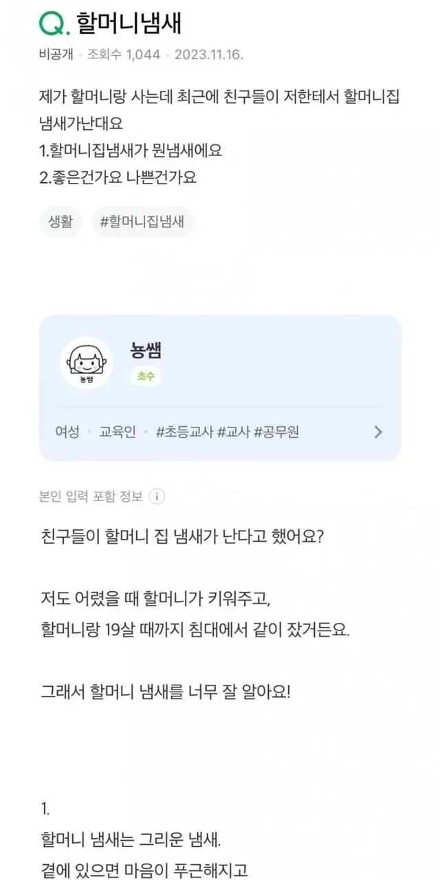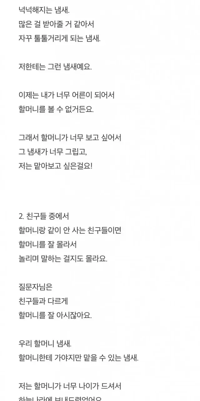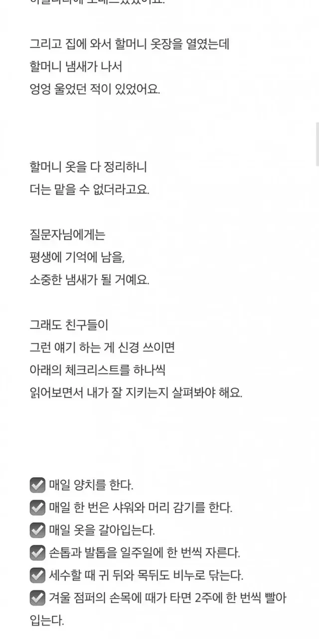 친구들이 할머니 냄새 난다고 하는 질문글에 대한 답변,,
