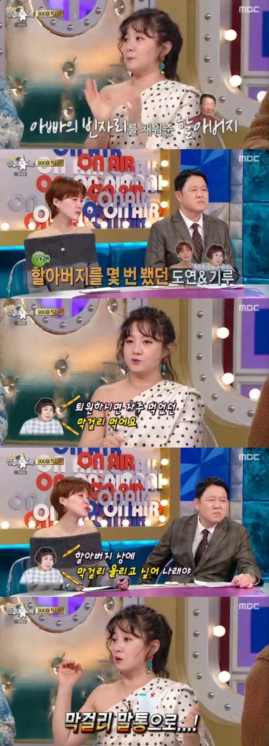 박나래는 "저는 아버지가 일찍 돌아가셔서 할아버지가 아버지 같은 존재였다. 그리고 장도연, 신기루 언니가 할아버지를 몇 번 뵀었다. 도연이가 조부상 연락에 바로 목포까지 와서 12시간을 함께 있어줬다. 그런데 맥주를 20병을 마시더라"고 말해 웃음을 줬다.