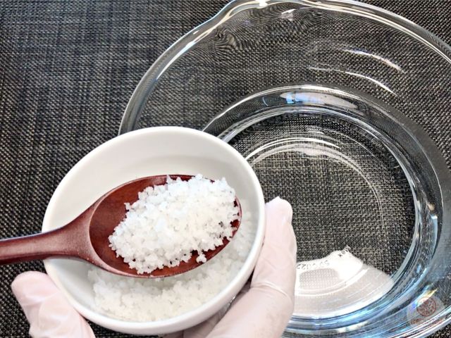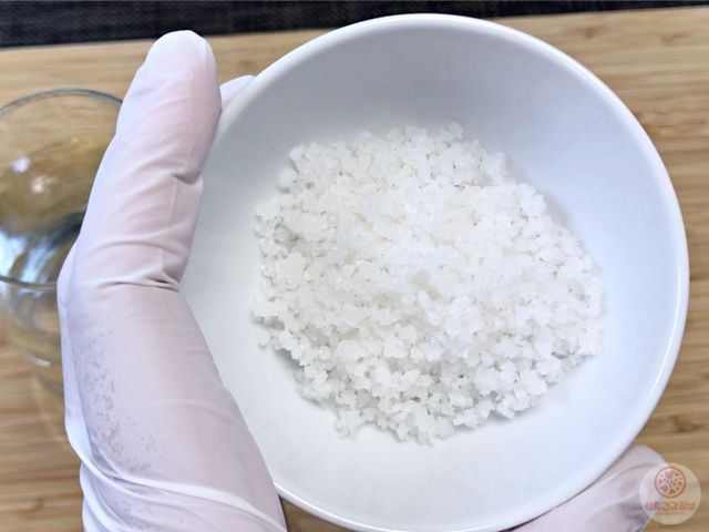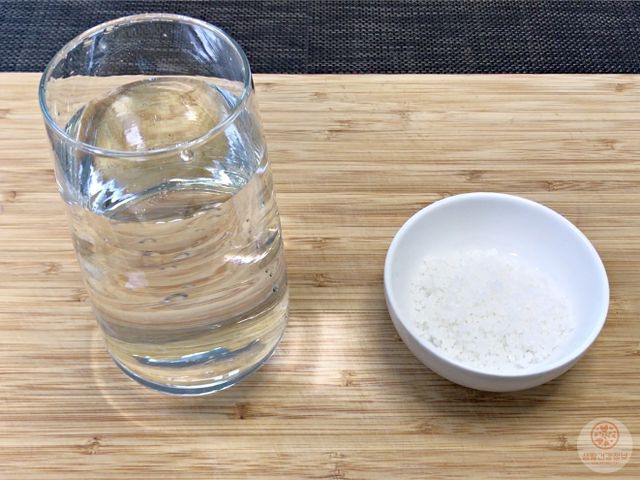 굵은소금을 물에 녹여서 소금물을 만들건데요.