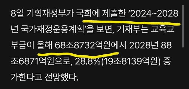 교육교부금이란 명목으로 한해 68조원이나 받고