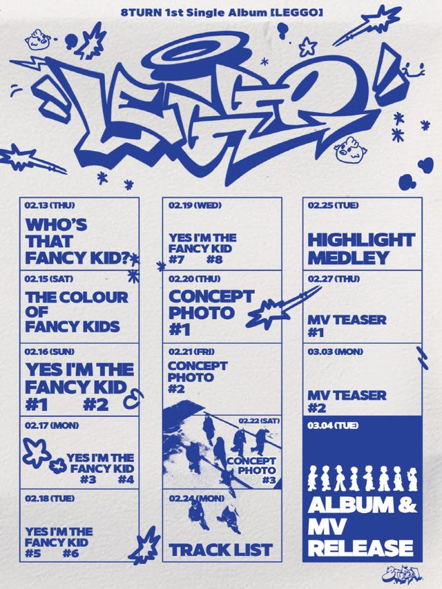 공개된 스케줄러에 따르면 오는 3월 4일 발매되는 에잇턴의 새 싱글은 ‘레고’(LEGGO)다. 에잇턴은 13일 ‘WHO’S THAT FANCY KID’, 16일부터 19일까지 ‘YES I’M THE FANCY KID’란 타이틀의 콘텐츠를 차례로 공개한다.