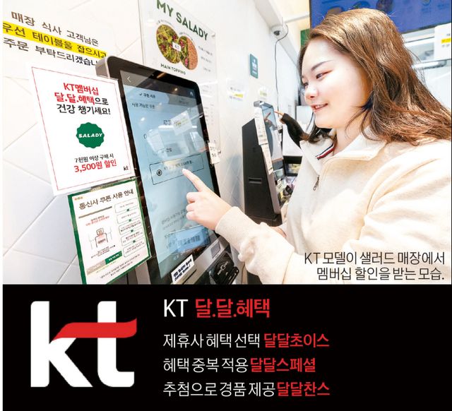 KT는 '매달 선보이는 달콤한 혜택'이라는 의미의 '달.달.혜택'을 내놨다. 원하는 제휴사 혜택을 선택하는 '달달초이스'와 혜택 중복 적용이 가능한 '달달스페셜', 추첨으로 선물을 주는 '달달찬스' 3가지로 구성했다.