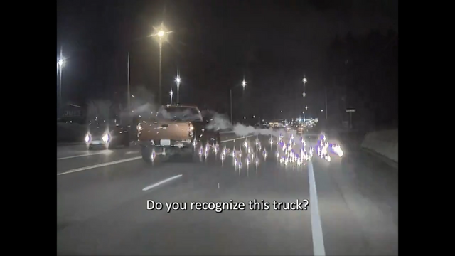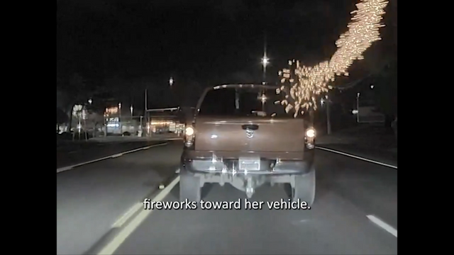킷샙 카운티 보안관 사무소가 공개한 영상을 보면 픽업트럭은 몇 분간 여성을 추격한 후 그녀의 차량을 추월했으며, 트럭이 앞서 나간 직후 내부에서 누군가 폭죽을 발사하기 시작했다.