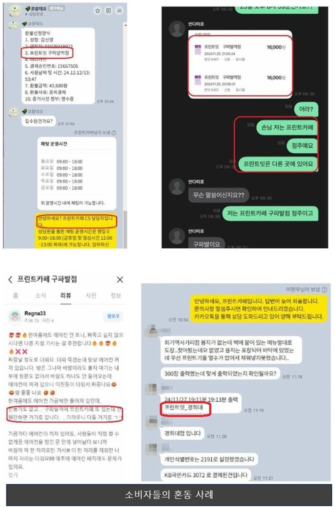 일부 소비자들의 프린트카페(유피소프트), 프린트잇(셀링랩) 혼동 사례. ⓒ 유피소프트