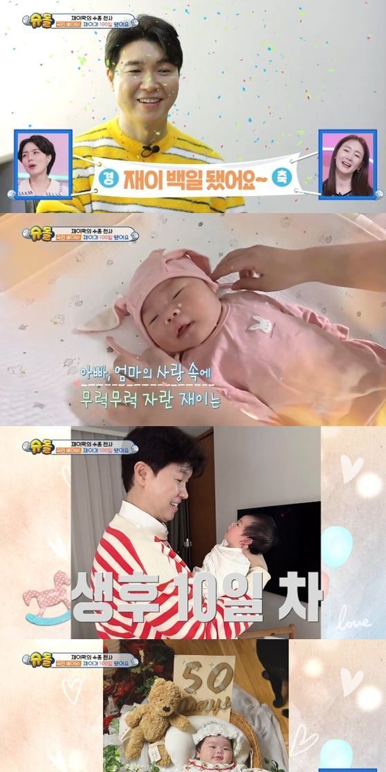 12일 방송된 KBS 2TV '슈퍼맨이 돌아왔다'에서는 박수홍 김다예 부부의 딸 재이 양이 100일을 맞이했다.