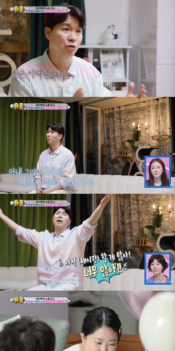 박수홍은 "물리적인 나이가 또래 아이를 키우는 아빠들보다 많다. 내게는 시간이 유한하다. 할 수 있는 시간을 쏟아부어야 한다. 전복이 데리고 세상 구경 많이 다녀야 한다. 아직 할 게 너무 많다"라며 조급한 모습을 보였다.