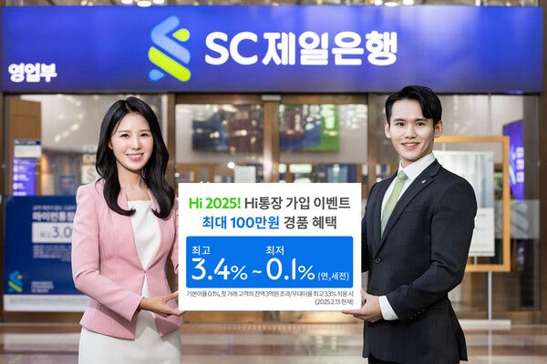 [포인트경제] SC제일은행은 입출금이 자유로우면서 우대금리 제공 조건 충족 시 최고 3.4%(이하 연, 세전)의 금리를 제공하는 ‘SC제일 Hi(하이)통장’에 가입하는 첫 거래 고객을 대상으로 경품 이벤트를 진행한다고 밝혔다.