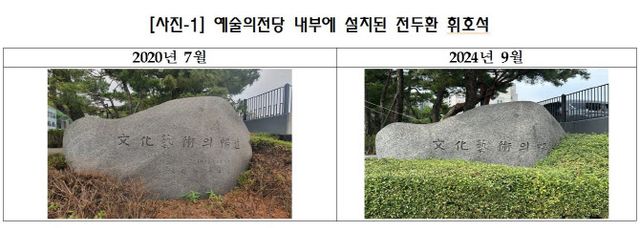 국정감사 직후 예술의전당은 내부 간부회의를 열고 국가기록원과 대통령기록관을 통해 휘호석 철거에 문제가 없음을 확인했다. 이어 지난달 20일 문체부로부터 최종적으로 철거 승인을 받아 2월 10일 경내에 설치돼 있던 ‘전두환 휘호석’을 철거했다.