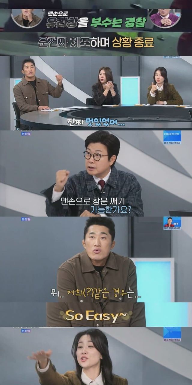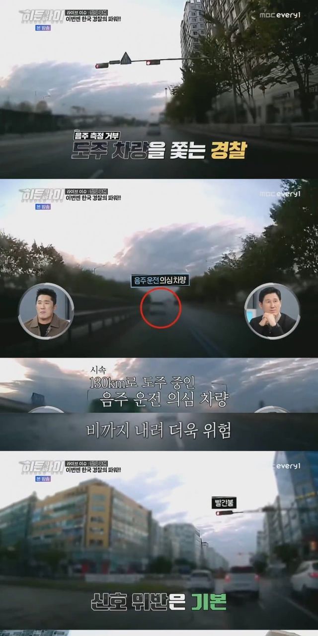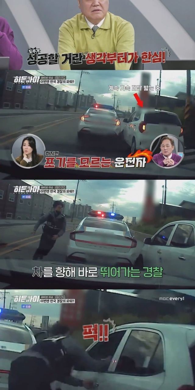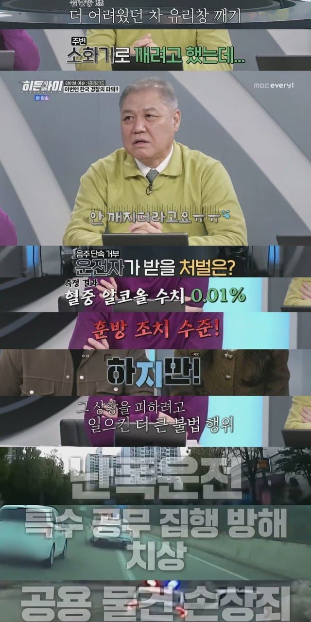 도주하는 음주 측정 거부 차량 운전자 잡기 위해 운전석 유리 깬 경찰