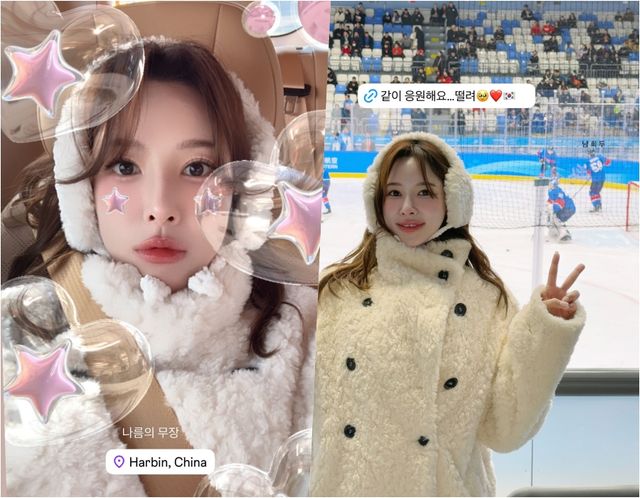 그는 이어 아이스하키 경기장을 방문한 모습과 함께 '남희두'와 함께 찍힌 사진을 업로드하며 "같이 응원해요 떨려"라고 적었다. 아이스하키 국가대표인 남희두는 이날 열리는 '2025 하얼빈 동계 아시안게임' 세미 파이널 경기에 출전했다.