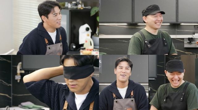 하지만 상황은 이내 역전됐다. 승우아빠가 장민호에게 알려주고 싶은 요리를 선보이자, 장민호가 몰래 준비한 검은 안대를 꺼내 장착한 것. 서로 약 올리기에 신난 두 사람. 장민호는 안대를 쓴 것도 모자라 먼저 음식의 향을 음미하고, 음식을 맛본 뒤 “와우. 재료는 뭘 썼대유?”, “한 입 더 줘봐유”라고 능청스러운 사투리로 백종원의 성대모사를 했다. 이에 승우아빠는 “아! 트라우마”라고 절규하기도.