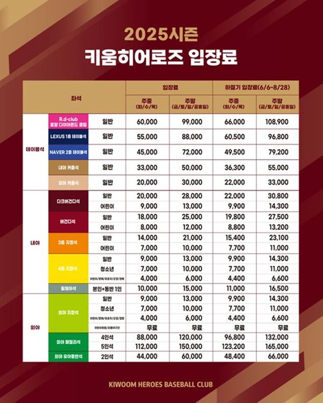 키움 히어로즈는 13일 2025시즌 고척스카이돔 홈경기 입장료 정책을 확정해 발표했다.