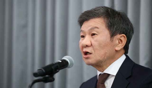 4선에 도전하는 정몽규 대한축구협회장이 지난 11일 오전 서울 종로구 포니정재단에서 기자회견을 하고 있다. / 뉴스1