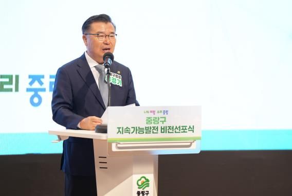 | ▲ 지난해 지속가능발전 비전선포식에 참석한 류경기 중랑구청장의 모습 |