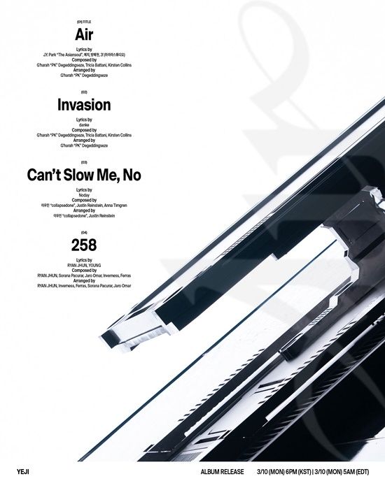 예지는 오는 3월 10일 신보 'AIR'를 발매하고 솔로 아티스트로 데뷔한다. 앞서 JYP엔터테인먼트는 2월 14일 0시 공식 SNS 채널에 예지 솔로 1집 'AIR' 트랙리스트 이미지를 공개했다.