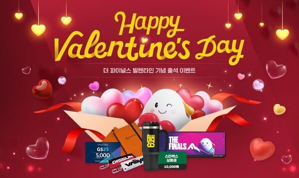 또한, 21일까지 밸런타인데이 기념 출석 이벤트를 실시한다. 기간 내 5일간 ‘더 파이널스’ 공식 홈페이지에서 출석 버튼을 누르면 ‘Mariachi’ 무기 스킨과 각종 총기 장식품 아이템을 지급하며, 특히 마지막 5회차 보상으로는 ‘더 파이널스’ 장패드, ‘OSPUZE’ 텀블러, ‘바이야’ 키링을 비롯해 GS25와 스타벅스 상품권 등 다양한 경품 중 1종을 증정한다.