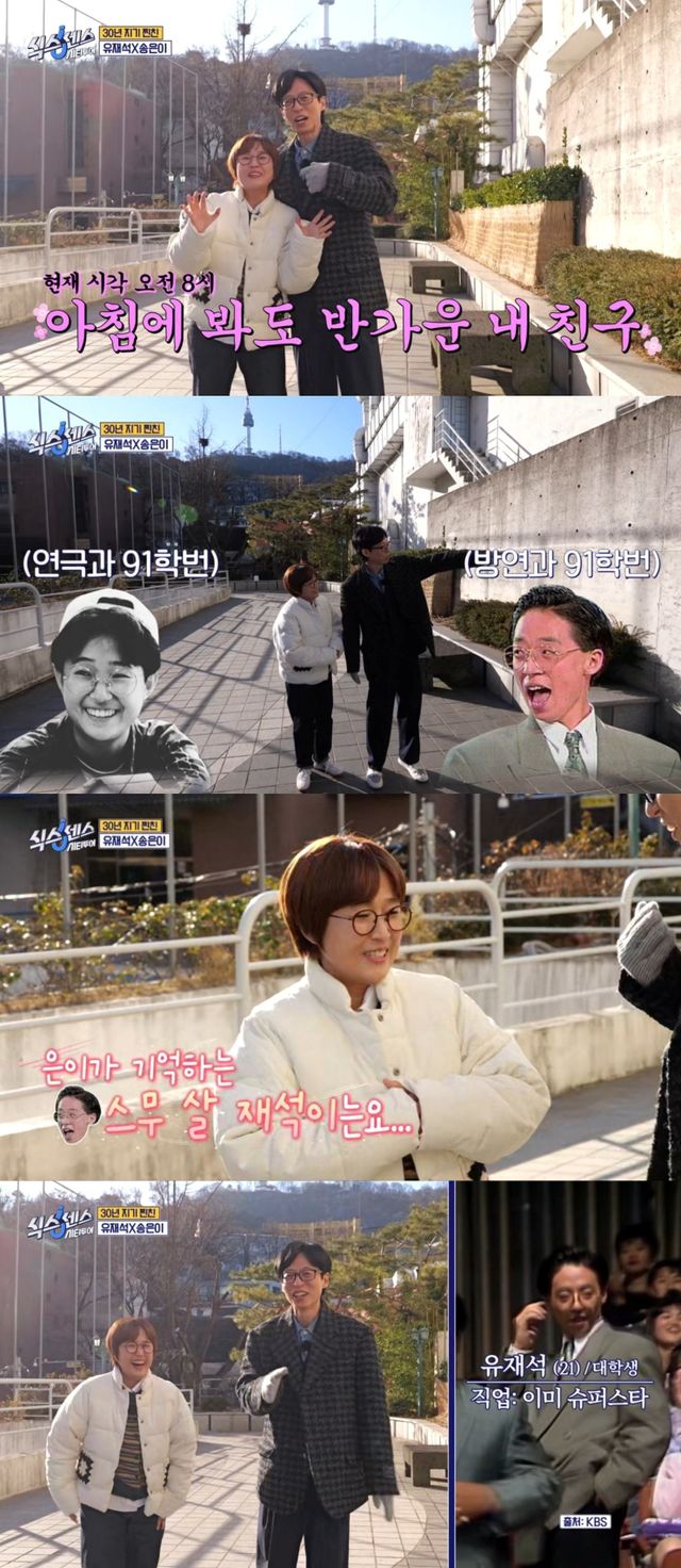 13일 첫 방송된 tvN '식스센스: 시티투어'(이하 '식스센스')에서는 서울예술대학교 91학번 동기 유재석과 송은이가 모교에서 오프닝을 장식했다.