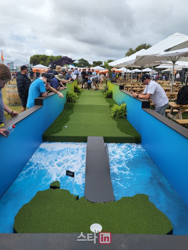일찌감치 코스를 찾은 이유가 있다. 1번홀에서 18번홀으로 가는 길 중간에 마련한 팬 빌리지에서는 다양한 이벤트가 펼쳐졌다. 호주를 대표하는 서핑이나 크리켓 체험은 물론 페이스 페인팅, 골프 퍼팅 챌린지, 축구 게임을 비롯해 새로 나온 자동차도 전시해 팬들의 발길을 머물게 했다. 이벤트 부스마다 긴 줄이 늘어섰고, 성공하면 마치 자기 일인 것처럼 함께 기뻐하고 환호하는 모습도 인상적이었다.