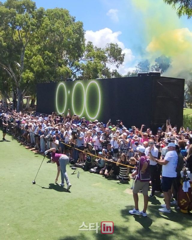 오후 12시 45분이 다가오자 골프장 분위기를 절정에 달했다. 전광판에선 카운트다운을 시작됐고, ‘0’이 되자 축포가 터졌다. 홀을 가득 메운 팬들은 일제히 함성을 지르며 개막 분위기에 흠뻑 빠졌다.