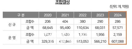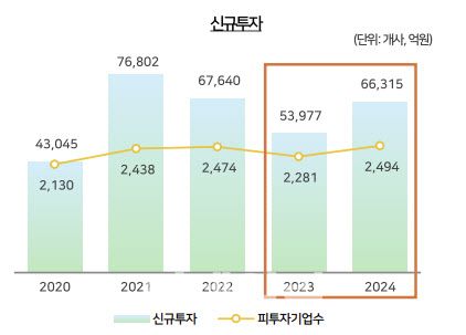 펀드 조성이 냉각된 분위기에도 VC 발 신규 투자는 활발하게 이루어졌다. 20204년 신규 투자금액은 6조6315억원으로 전년 대비 22.9% 증가했다. 투자 건수 역시 2281개사에서 2494개사로 늘어나며 VC가 신중하면서도 선택적으로 투자를 확대하고 있음을 보여준다.