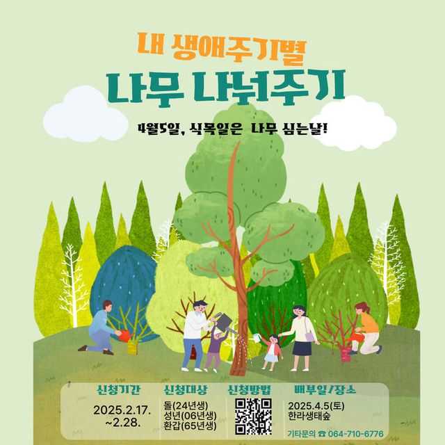 [한라일보] 제주특별자치도는 나무심기 문화 확산을 위해 도내 기관·단체와 올해 성년, 환갑, 돌을 맞은 도민들에게 나무 6000여 그루를 무료로 공급한다고 14일 밝혔다.