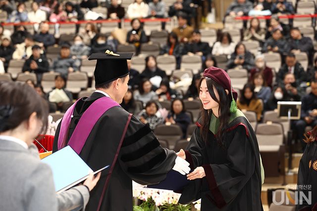 학위수여식에서 김경진 정의학원 이사장은 영상 축사를 통해 “서울여대에서의 배움이 졸업생 여러분을 이끌었듯, 이제는 각자의 자리에서 사회의 변화를 이끄는 주역이 되길 바란다.”는 메시지를 전했다. 이어 승현우 총장의 격려사와 교수 및 후배들의 축하 영상, 공연이 이어졌다. 특히 지난해에 이어 올해도 사회혁신(Social Innovation) 특성화 교육을 이수한 학생 중 ‘SWU-Social Innovator’가 배출됐다. 올해는 독어독문학과 임서현 학생이 총장 명의 인증서를 수여받았다.