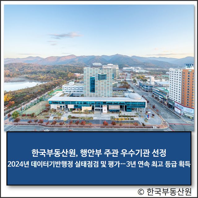 한국부동산원이 행정안전부 주관의 '2024년 데이터기반행정 실태점검 및 평가(이하 데이터기반행정 실태평가)'에서 우수기관으로 선정됐다.