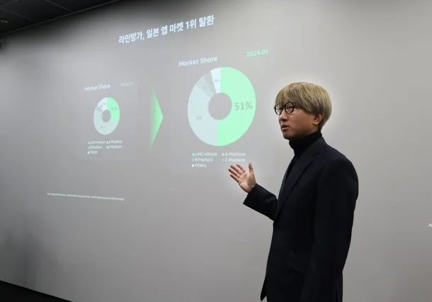 김 대표는 13일 일본 도쿄 LDF 오피스에서 열린 기자간담회에서 라인망가의 성장 요인을 '창작 생태계 구축'에 있다고 강조했다. 한국 웹툰 '입학용병', '재혼황후', '약탈신부', '상남자' 등은 라인망가에서 월 거래액 1억엔(약 9억원) 이상을 달성한 작품들이다. 이 중에서도 '입학용병'은 2023년 월 거래액 1억 8000만엔(약 16억3000만원)으로 라인망가 단일 작품으로 최대 규모 월 거래액을 기록했다.