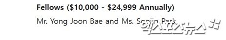 해당 사립학교는 두 사람의 자녀가 다니는 곳으로, 학교 측은 'Fellows(펠로우)' 등급 명단에 "Mr. Yong Joon Bae and Ms. Soojin Park"라는 이름을 기재했다.