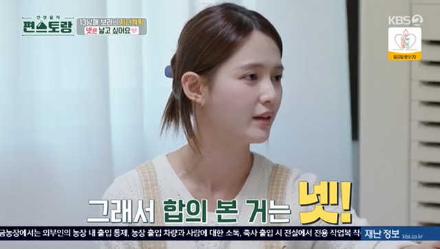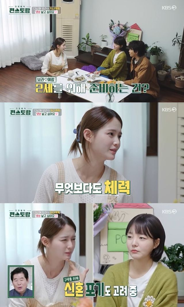 이에 김기리는 "보라는 (아이를) 많이 낳을 계획이니까 뭘 준비하고 있냐"고 물었고, 남보라는 "저희는 체력을 준비하고 있다. 현실적으로 숫자 계산을 해봤을 때 제가 적은 나이가 아니더라. 목표를 이루기 위해서라면 신혼을 포기할 생각도 있다"고 말했다.