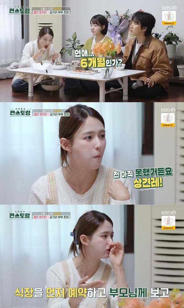이어 남보라는 "저는 아직 못했다. 상견례"라고 말했고, 문지인은 "너 결혼하는 거 너 혼자 생각아니냐"고 물었고, 김기리는 "설마 부모님들이 기사를 통해서 만남을 아신 거냐"고 물었다.