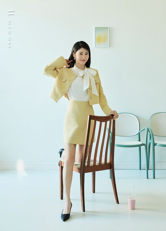 먼저 로맨틱한 무드가 돋보이는 핑크톤의 화보에서는 귀여운 러플 블라우스에 포멀한 블랙 재킷, 라이트한 블루컬러의 진을 매치한 스타일링을 제안했다. 봄 햇살처럼 따사로운 느낌의 화보에서는 봄 시즌을 여는 달콤한 분위기를 표현했다. 소프트 베이지 컬러의 스웨이드 자켓과 스커트를 셋업으로 착용, 부드러운 텍스쳐와 톤온톤 스타일링의 매력을 한껏 보여줬다.