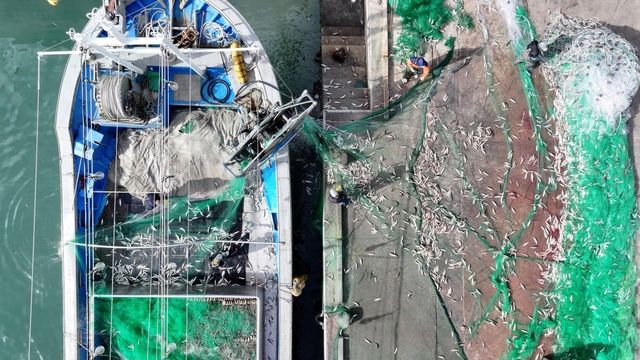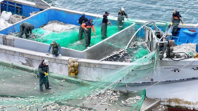 지난해 11월 5일 오전 제주시 한림읍 한림항에서 어민들이 그물코에 걸린 참조기를 떼어내고 있다. / 연합뉴스
