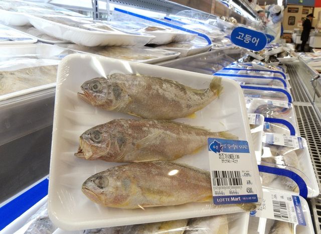 서울의 한 대형마트 수산물 코너에 진열 돼 있는 냉동 참조기의 모습. / 연합뉴스