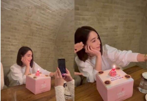공개된 영상에는 이민정이 작은 케이크 앞에서 생일 축하를 받는 모습이 담겼다. 특히 올해 43세가 된 이민정의 변함없는 동안 미모가 시선을 사로잡는다.