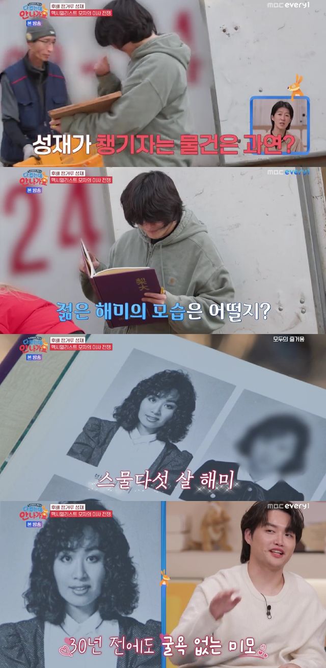 그러다 황성재가 먼저 챙기자고 말하는 물건이 등장했다. 바로 박해미의 1985년도 이화여대 졸업앨범. 황성재는 "엄마 혼자 사진 속에서 이목구비가 다르다"며 스물다섯 살 박해미의 모습에 놀랐다.
