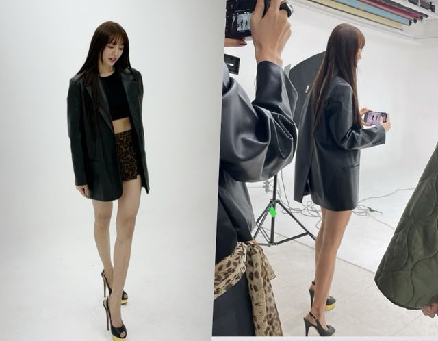 공개된 사진 속 윤은혜는 초미니 스커트에 블랙 크롭탑 이너를 입고 블랙 루즈핏한 재킷을 걸친 모습이다. 윤은혜는 나이를 가늠할 수 없는 슬렌더 보디라인으로 해당 의상을 완벽하게 소화하며 아름다움에 감탄을 더한다.