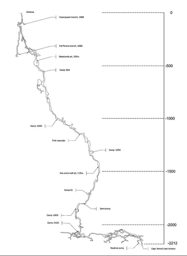 깊이가 2204m나 되는 이 동굴은, 조지아 북서부의 압하지야 자치공화국에 위치한 동굴로 현재까지 발견된 동굴 중에서는 최대 깊이의 동굴로 알려져 있다.