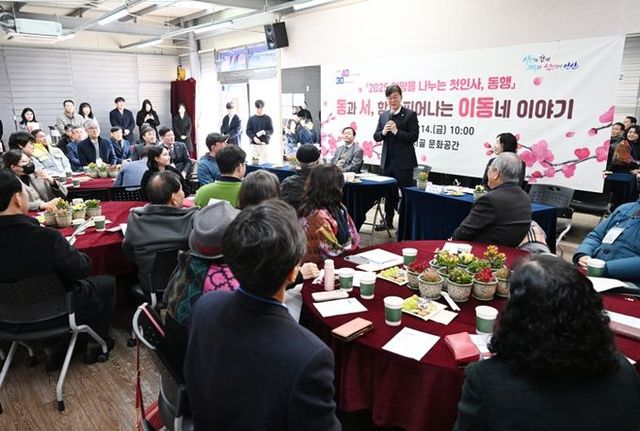 [와이뉴스] 안산시는 지난 14일 이동 한대앞역 광장의 아뜨시끌 문화공간에서이동 주민들과 함께 ‘동과 서, 함께 피어나는 이동네 이야기’를 테마로 ‘희망을 나누는 첫인사, 동행’ 행사를 진행했다고 15일 밝혔다.