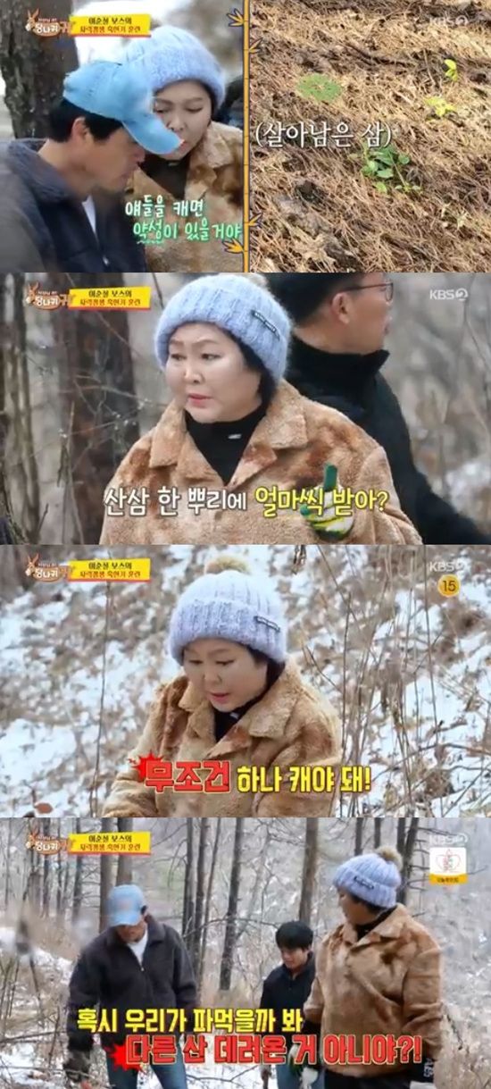 이순실은 산삼 가격을 듣고 눈이 번쩍 하더니 바로 산삼 캐기에 돌입했다.
