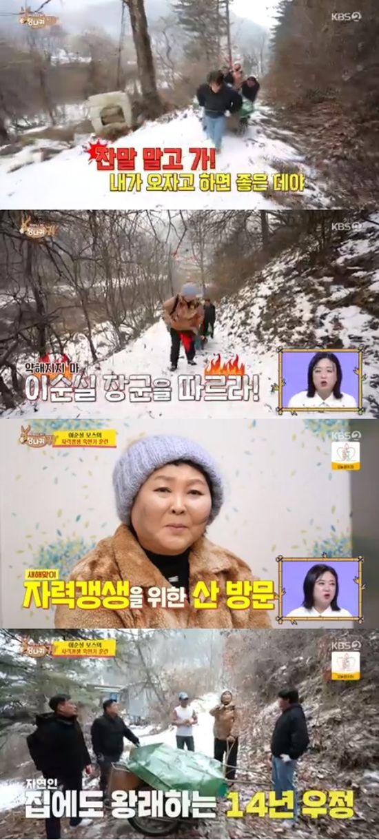 이순실은 이번 산행의 이유에 대해 "박 이사, 장 이사가 느려 터진다. 정신력도 다 빠지고 기강도 다 빠지고 해서 자력갱생이라는 게 뭔지 자립자족으로 살라고 왔다"고 전했다.