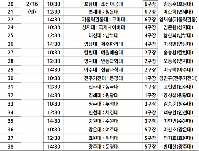 이외 호남대, 남부대, 영남대, 칼빈대, 전주대, 김해대, 청주대, 수원대, 광운대, 호원대, 광주대가 승리했다. 가톨릭관동대와 구미대, 상지대와 국제사이버대, 명지대와 안동과학대, 전주기전대와 동강대는 비겼다.