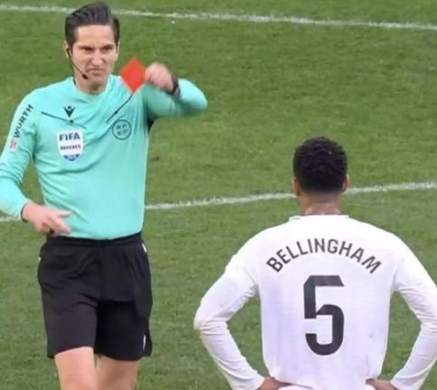 벨링엄은 이날 주심을 맡은 호세 루이스 무누에라 몬테로 심판에게 다가가 판정에 대해 항의를 하다 레드카드를 받았다.