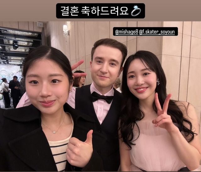 2018 평창 올림픽 때 아이스댄스 한국 국가대표로 출전했던 민유라 역시 같은 날 박소연이 웨딩 드레스를 입고 미샤 지와 다정히 서 있는 모습을 SNS에 실었다.