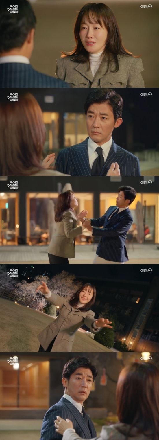 마광숙은 "그치. 그럴 리가 없지. 장수 씨가 나만 두고 죽을 리가 없지. 내가 얼마나 끔찍한 악몽을 꿨는 줄 알아요? 꿈에서 장수 씨가 교통사고로 죽은 거야"라며 품에 안겼고, 한동석은 "이 봐요. 사람 잘못 봤어요"라며 밀어냈다.