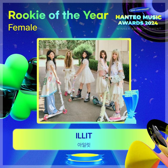 아일릿은 ‘HMA 2024’를 포함해 국내외 시상식에서 신인상 5관왕을 달성했다. 이들은 앞서 ‘2024 마마 WARDS’, ‘MMA2024’, ‘39회 골든디스크어워즈’, ‘제 66회 일본 레코드 대상’ 등에서 수상의 영예를 안은 바 있다.