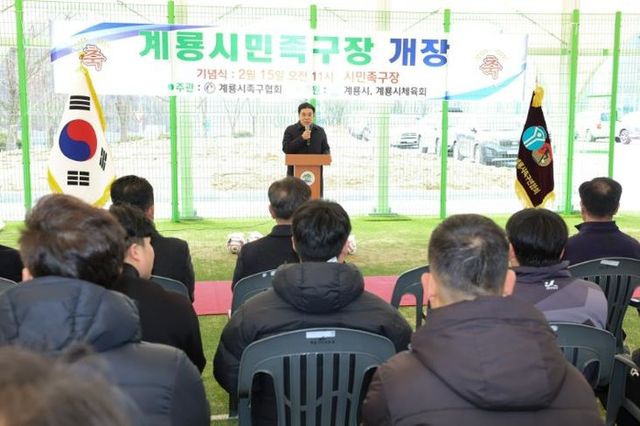 [파이낸셜경제=김영란 기자] 계룡시는 지난 15일 엄사면 종합운동장에서에서 비가림시설이 설치된 전천후 족구장 개장식을 가졌다.