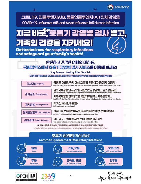 오늘(17일)부터 김포·제주공항을 통해 입국한 해외여행자는 3종 호흡기감염병 검사를 무료로 받을 수 있다.