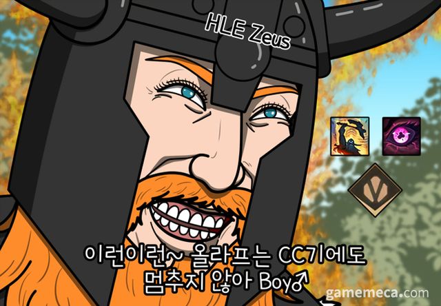 특히 한화생명의 '제우스' 최우제는 친정팀인 T1을 상대로 맹활약하며 눈길을 끌었습니다. 그 중에도 5세트 때 기용한 올라프로 T1의 핵심인 드레이븐을 전담마크하며 팀의 승리를 견인했죠. 대지 영혼 실드와 레나타의 긴급구제를 받으며, CC기를 무시한 채 달려드는 올라프의 모습은 한화생명의 별명인 '파괴전차' 그 자체였습니다.